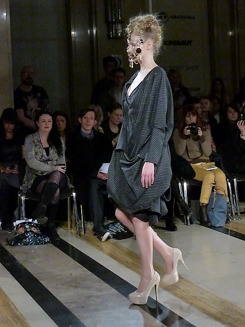 Her beautiful designs were accompanied by some fantastic headpieces - jewels of an aray of colours covering the models' faces which added to the sense of surrealism and fairytale. As I watched the models stride past me with their glittering headpieces I couldn't help but briefly fantasize about being a model myself just so I could wear these gorgeous creations!